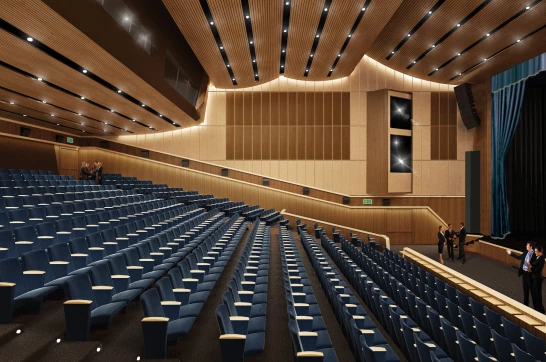 Acoustic designs here aim to achieve a balanced reverberation time, enabling clear speech as well as rich musical performances. Panels, diffusers, and seating layouts are all optimized to deliver a uniform sound experience.
