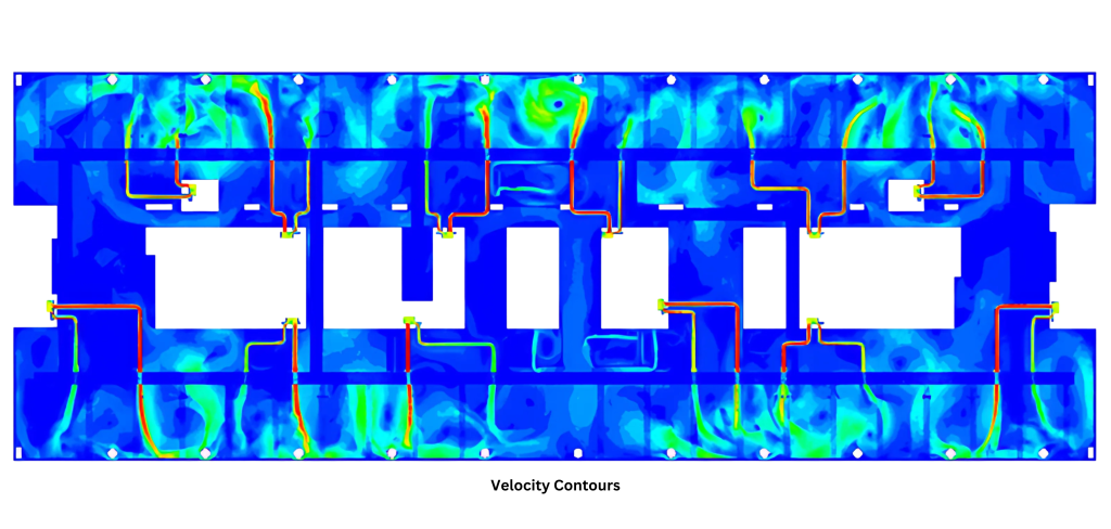 Overall, the CFD analysis demonstrated how optimized underfloor HVAC systems improve air circulation, thermal comfort, and energy efficiency in office environments. By leveraging CFD simulations, ventilation strategies can be refined to enhance occupant comfort and operational performance.