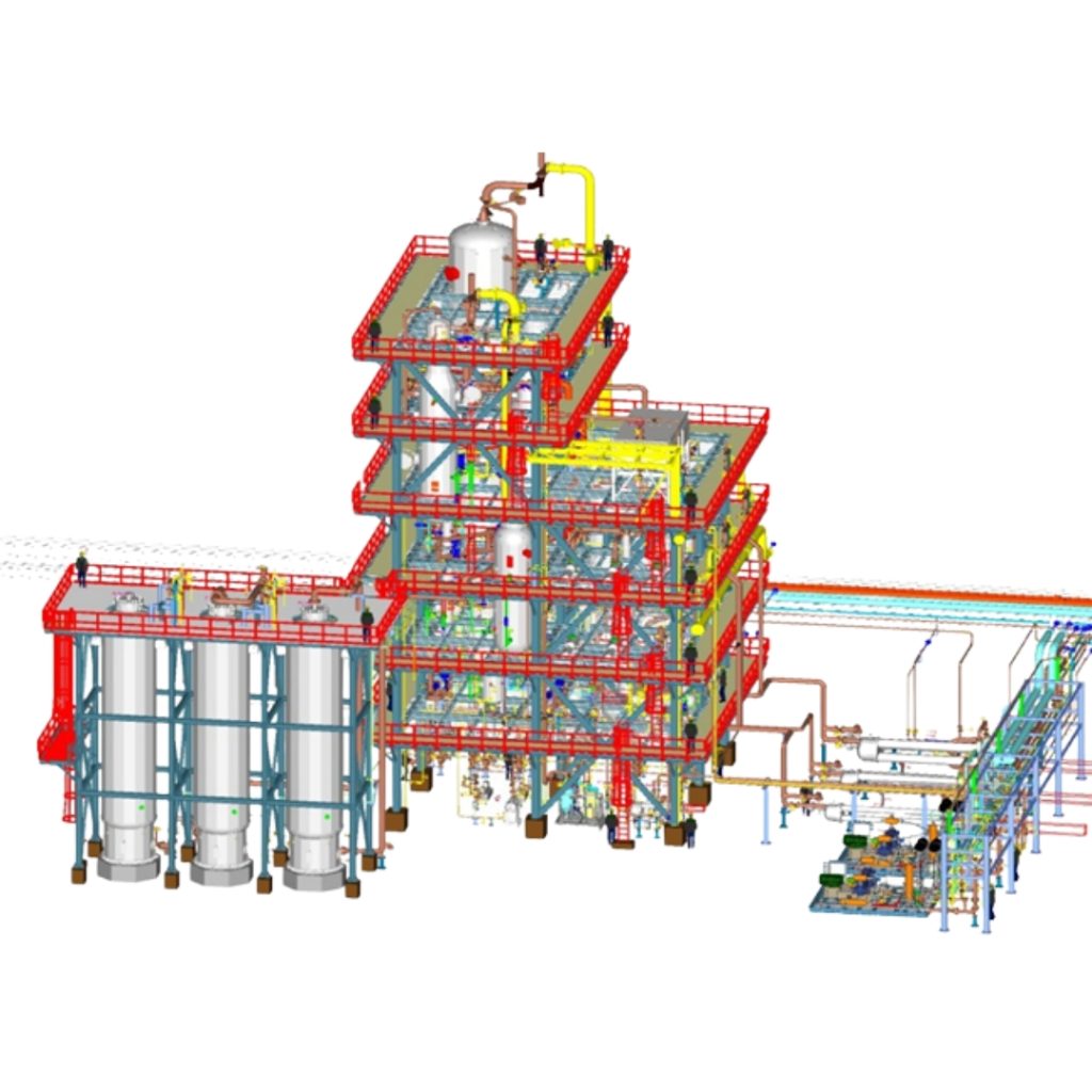 A Produced Water Treatment Plant plays a crucial role in processing and purifying water generated from industrial operations, ensuring compliance with environmental and regulatory standards. The steel framework serves as a fundamental structural element, providing stability and support for filtration units, separation tanks, and treatment systems while enduring variable loads and chemical exposure. Through Design & Planning, a resilient foundation is developed, followed by Detailing & Modelling to refine structural components for optimal performance. Finite Element Analysis (FEA) & Structural Analysis are employed to evaluate load distribution, structural integrity, and durability, ensuring efficient and safe operation under demanding industrial conditions.