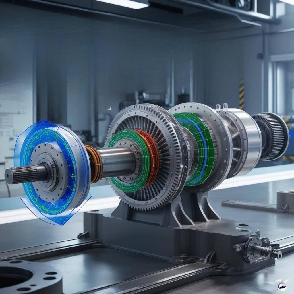 TVA of the complete drive train to check the torsional resonance and stresses induced on the shaft.