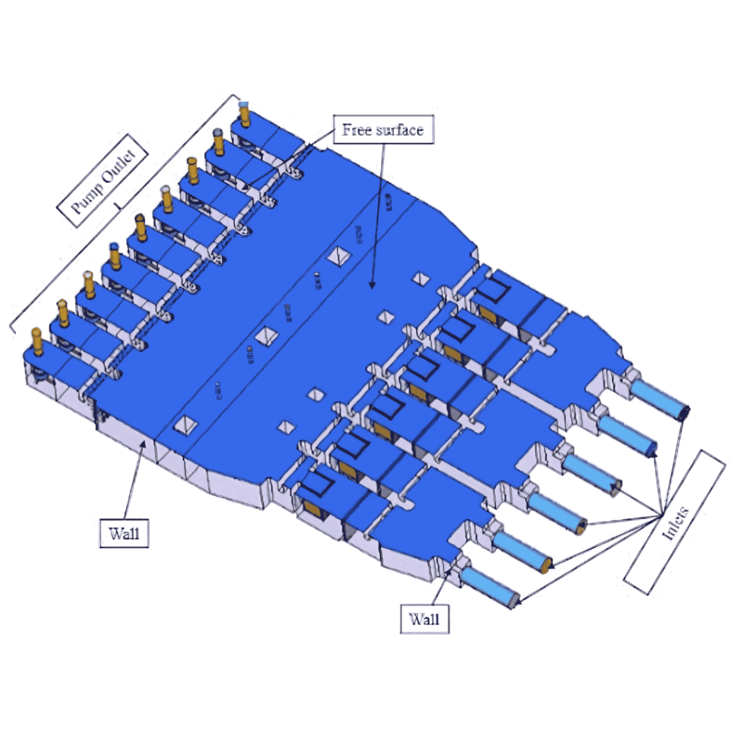 - For various pump & sluice gate working combinations, sump performance at pump suction is predicted beforehand.